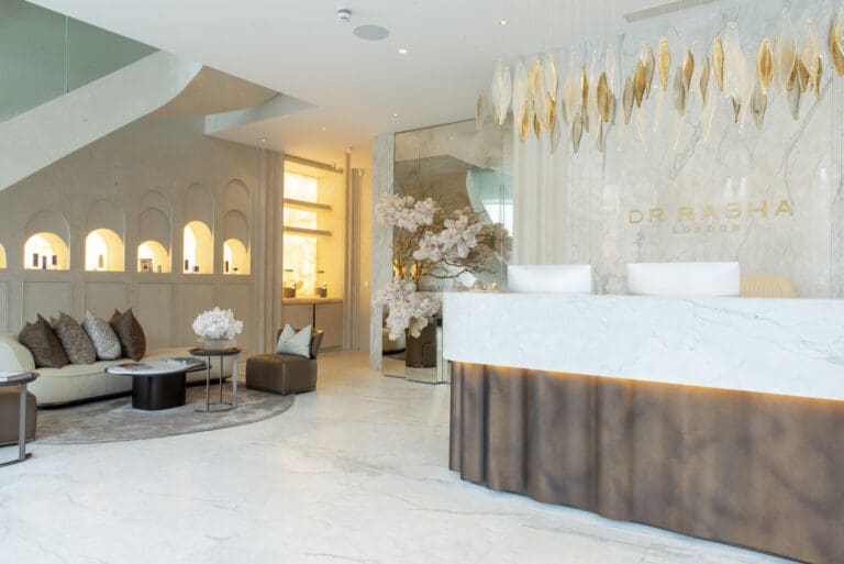 Dr Rasha, as she is known to her clients, trained as a medical doctor in Kuwait before completing a Master’s in Australia and moving to the UK in 2015. She built her aesthetic practice alongside NHS work, growing quietly through word of mouth after tutors on her aesthetic training courses noticed that she had “an eye for it”. For three years, Dr Rasha worked seven days a week, juggling GP training with weekend clinics she rented from a Harley Street address, before deciding to go all in. The Brompton Road clinic – three floors, a discreet private entrance, and a two-year anniversary on 8th April – is what that risk became.